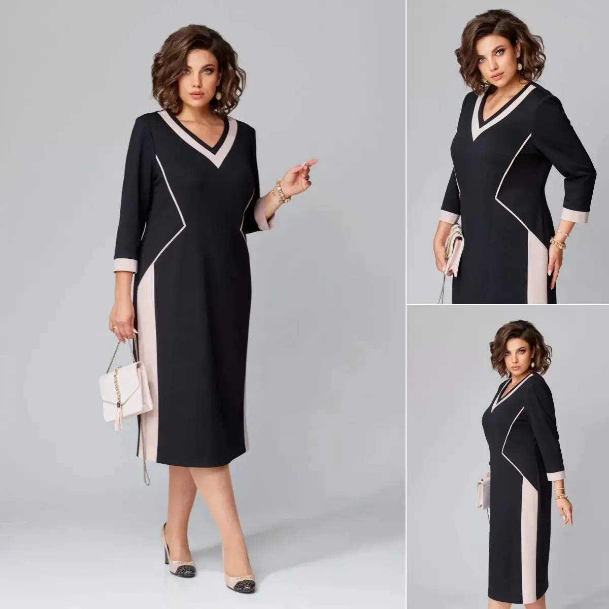 👗🎀【S-5XL】Wysokiej jakości czarno-różowa patchworkowa sukienka