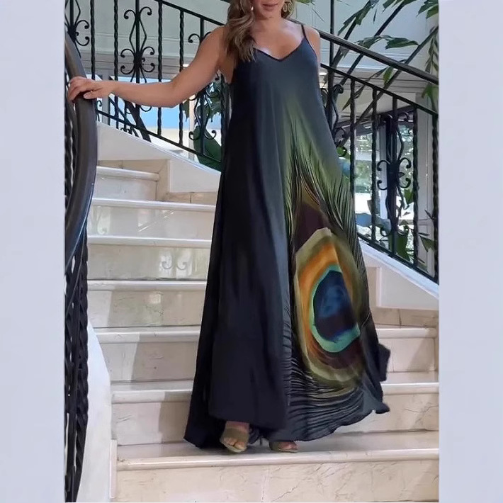 Damska nowa sukienka w stylu Sling z nadrukiem i luźnym krojem bez rękawów