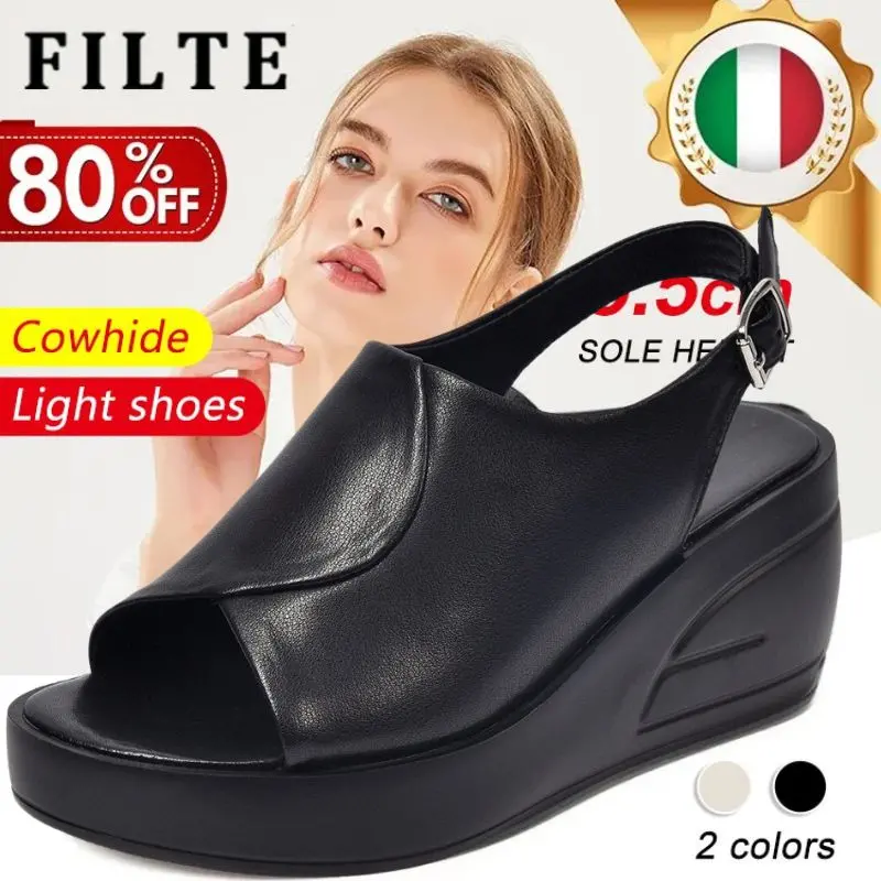🔥【35-41】👡 2025 Modne damskie sandały na koturnie ze skóry z jednym paskiem, miękka podeszwa, gruba
