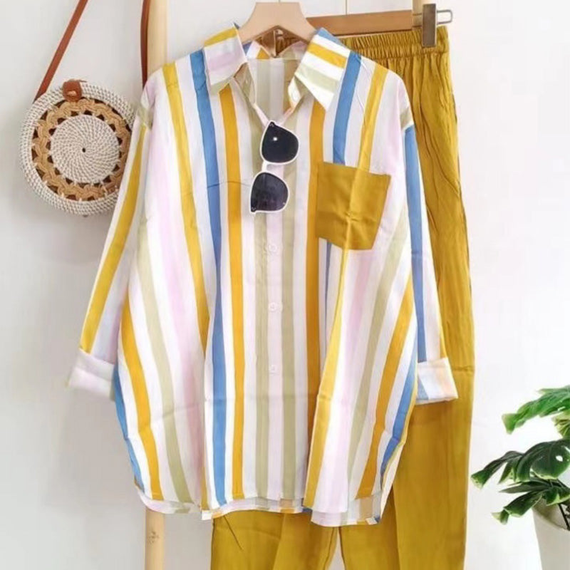 1 * Kolorowy paski damski luźne 2 - kawałki garnituru