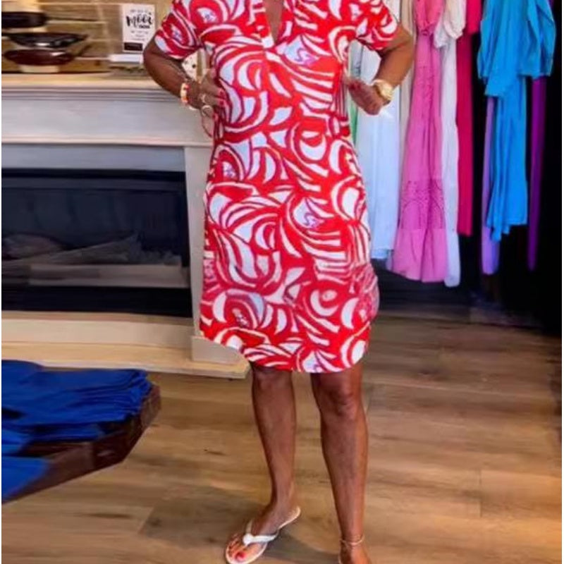 šModna sukienka z krótkim rÄkawem i nadrukiem w ksztaÅcie litery Vš