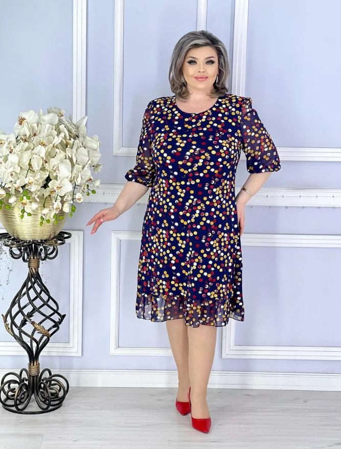 Pakiet obejmuje : 1* Kolorowa damna kropkowana sukienka Dane Midi