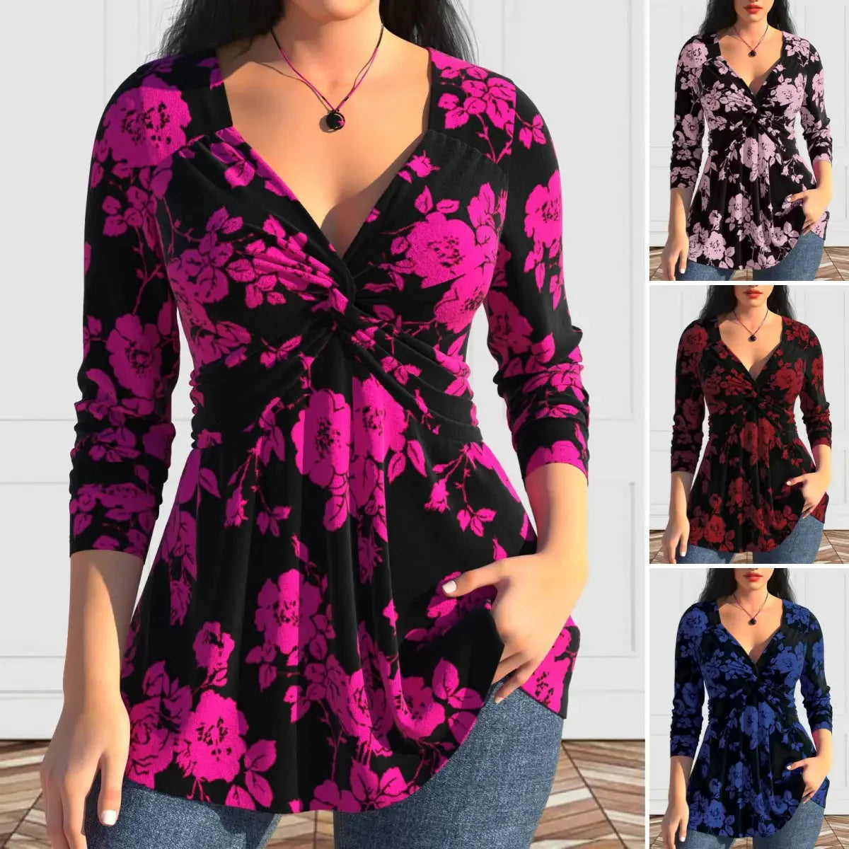 🌟Nowe modne bluzki z długim rękawem i dekoltem w serek z nadrukiem z wczesnej wiosny 2025🌷