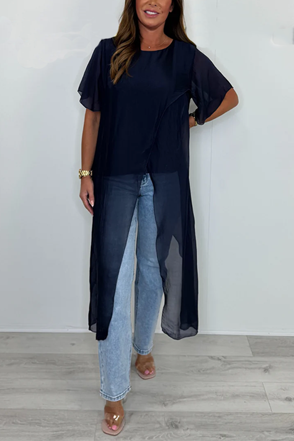 Cieszymy się, że kliknąłeś nasz jedwabny krzyż z krótkim rękawem na Longline Top, ponieważ naprawdę uwielbiamy jego swobodny klimat! Longline Top Design sprawia, że jest to świetny wybór dla każdej mody.