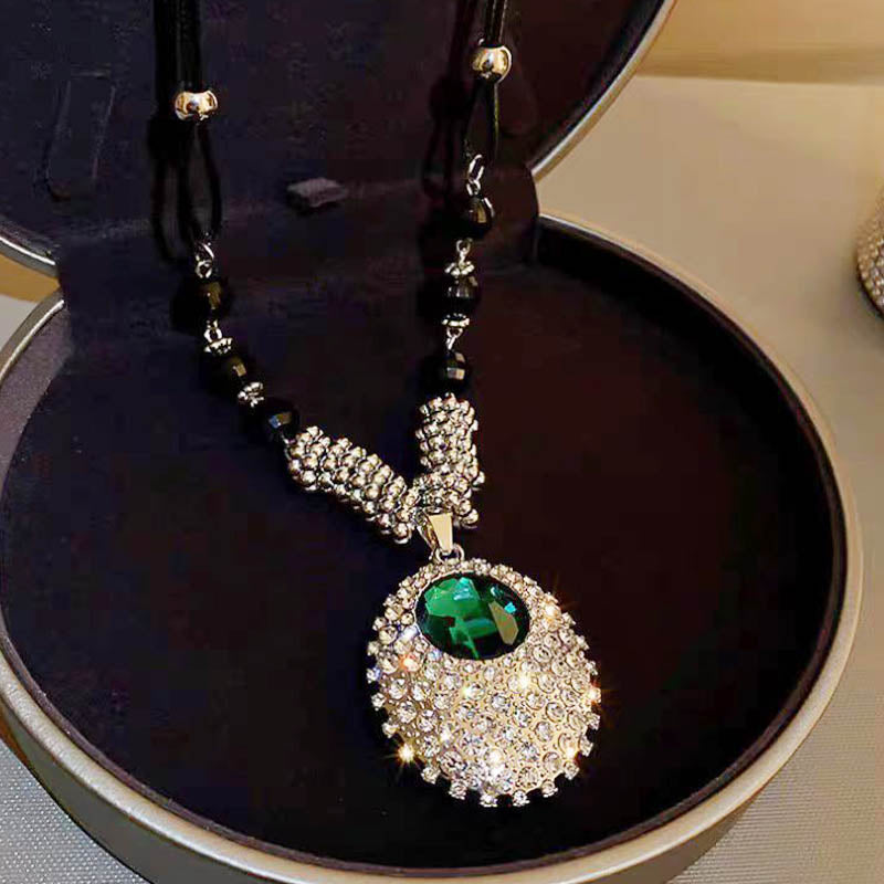 Oszałamiający wisiorek : zawiera olśniewający szmaragdowy wisiorek, otoczony błyszczącymi dhinestonami, dodając kolor i elegancję do każdego stroju.