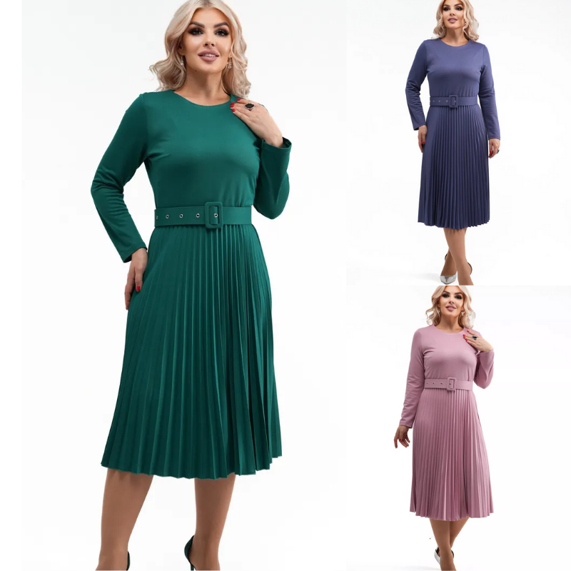 【S-5XL】👗2025 nowa modna elegancka wysokiej jakości sukienka plisowana w jednolitym kolorze