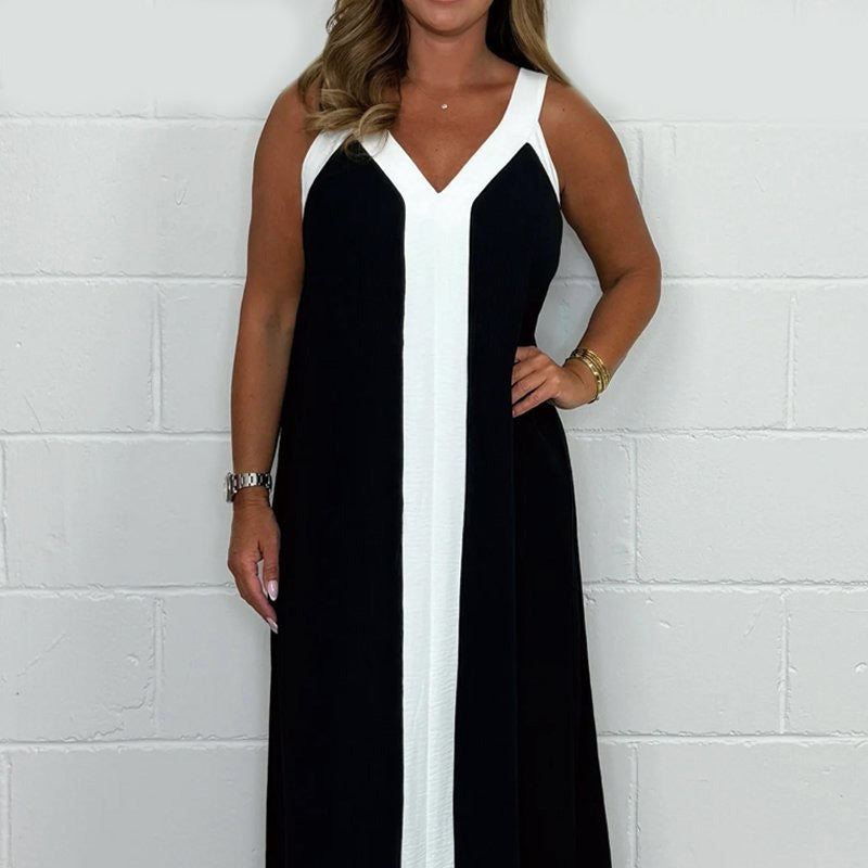 Modna konstrukcja bloków kolorów: udoskonal swój styl nowoczesnymi szczegółami kontrastowymi wzdłuż krawędzi sukienki. Strategiczne bloki kolorów zapewniają efekt odchudzania i nadają tej wszechstronnej sukience Maxi nowoczesny wygląd. Idealny do mody -świadome kobiety, które doceniają subtelne, ale znaczące szczegóły.