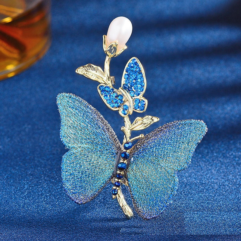 Elegancki projekt motyla : Ta broszka jest kształtowana jako żywy motyl z delikatnymi haftowanymi skrzydłami w kolorze gradientowym, prezentując nienaganne kunszt.