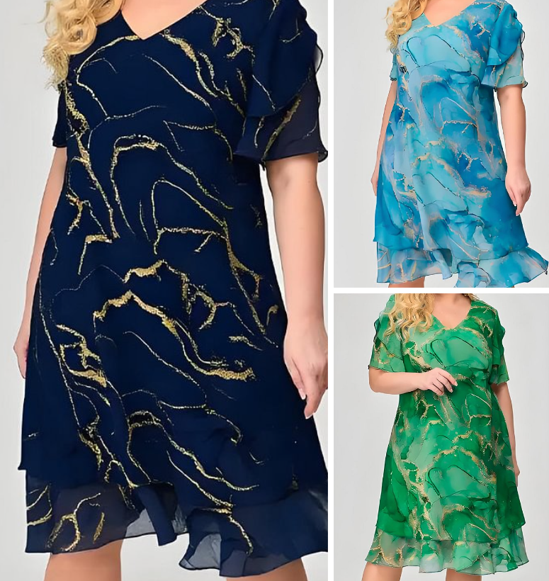 Pakiet zawiera: 1 * Kobieca sukienka z krótkim rękawem i kaskadowym nadrukiem z satyny