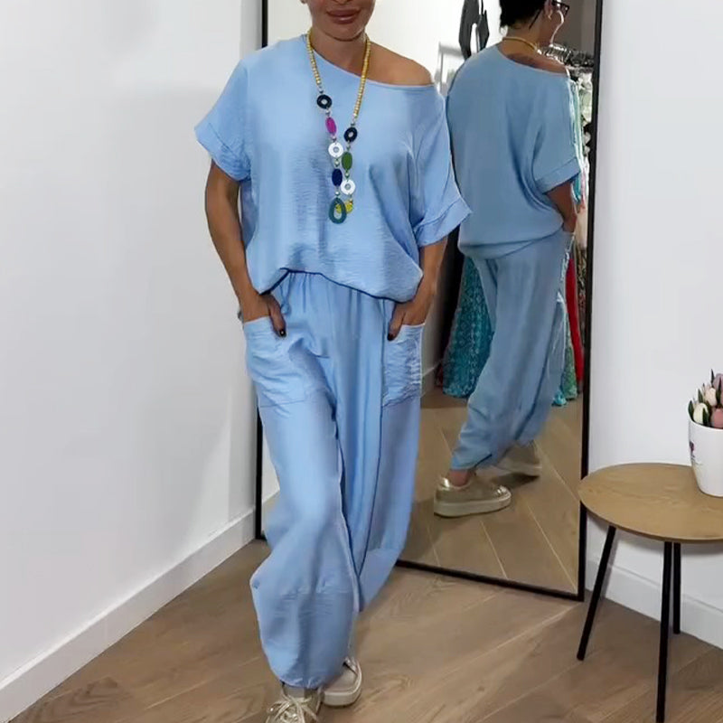 WSZECHSTRONNY, CODZIENNY STYL: Ten skoordynowany zestaw mistrzowsko łączy w sobie modę i wygodę, zapewniając wygodę przez cały dzień. Rozkładany dekolt zapewnia swobodę stylizacji – noś go jako szykowny top z odkrytymi ramionami, aby uzyskać kobiecy wygląd, lub jako klasyczny, okrągły dekolt, aby uzyskać większe zakrycie.